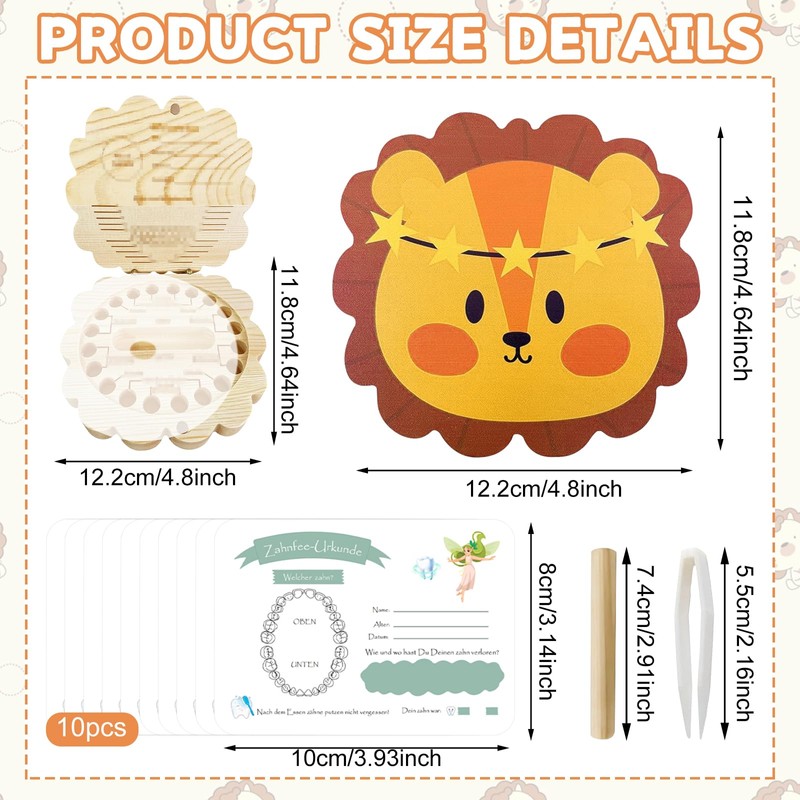 - Milk tooth box: you will receive a wooden tooth box set with a wooden milk teeth box, tweezers, a wooden stick, a glass jar, a plastic divider and 10 cards. This tooth box for milk teeth set is ideal for collecting and storing children's milk teeth and leaves a trace of their growth.