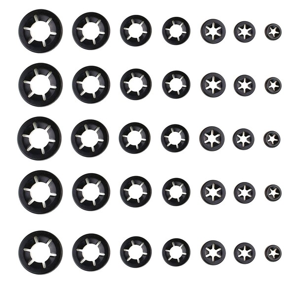 UoYu 7 Sizes Internal Tooth Starlock Washers, Quick Speed Locking Washers, Push On Speed Clips Fasteners Assortment Kit 200 Pcs