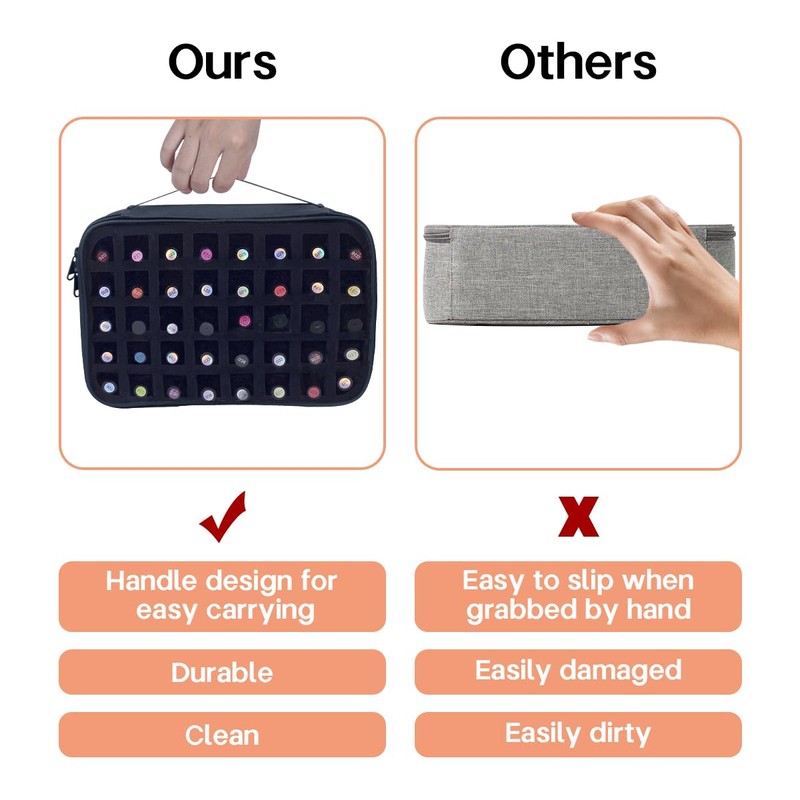 Good partition design helps to maintain the shape and stability of the bag and keep nail polish in good condition. Reinforced top handle makes it easy to carry nail polish suitcase and carry it stably anywhere