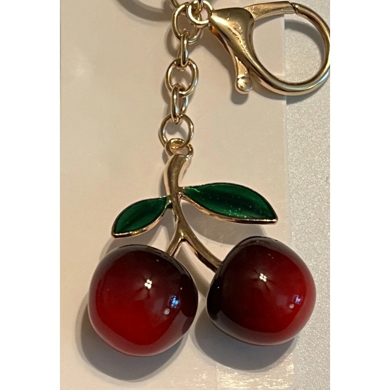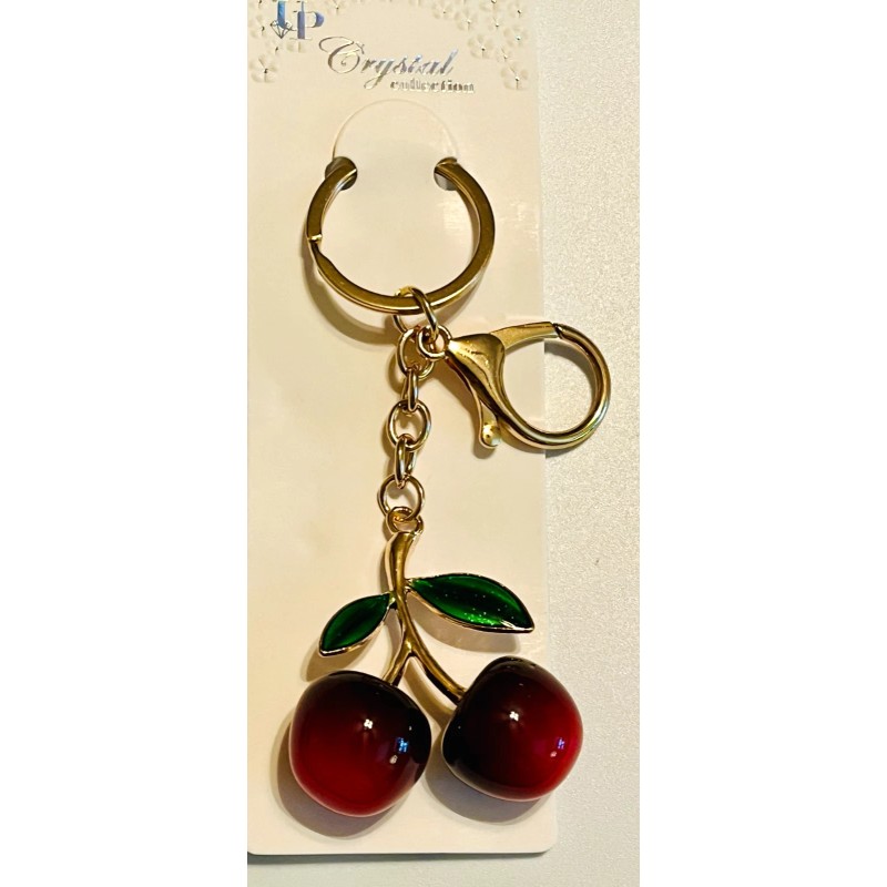 UP Crystal Collection Cherry Bag Charm KeyChain Gold Tone Enamel Glitter