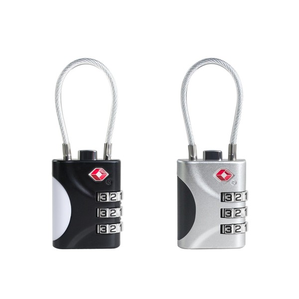 UP Security TSA Approved Luggage Locks - Small Combo Travel Padlock with Cable, TSA 007 Suitcase & Backpack Security, Durable & Easy to Use (Black+Silver)