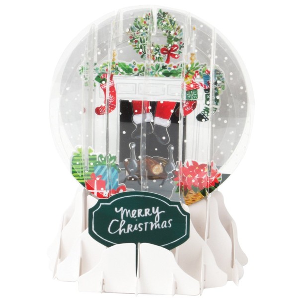 Up With Paper Pop-Up Holiday Snow Globe Greeting Card - Mantel