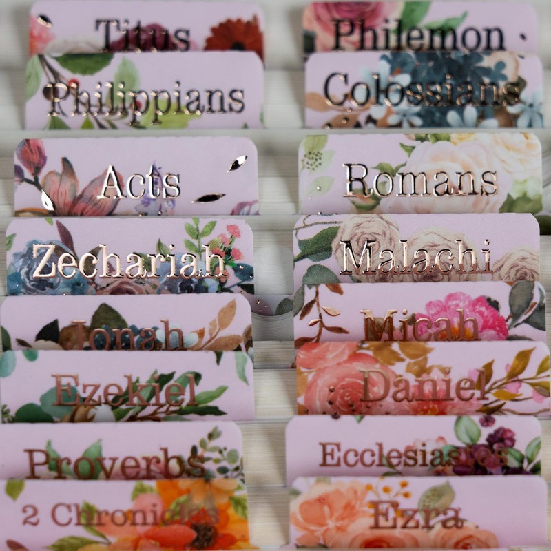 - Unique: Rose Gold foil Embossed Lettering and Embossed floral pattern.This is the ideal christian gi.ft. These unique Bible index tabs make a great gi.ft for your girlfriend, mum, kids, or anyone who loves beautiful things in life.