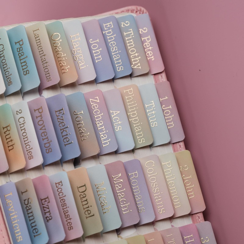 - Unique: Bible tabs with summary descriptions and Rainbow Gold Foil Embossed Lettering.This is the ideal christian gi.ft. These unique Bible index tabs make a great gi.ft for your girlfriend, mum, kids, or anyone who loves beautiful things in life.