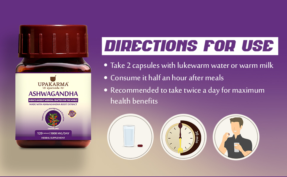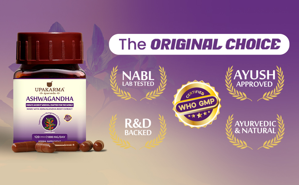 UPAKARMA Ashwagandha | 60 Day Supply | Pure Extract Based 1000 mg per Serving | Lab Tested, R&D Backed, 120 Vegan Capsules, Supplements for Stress Relief and Energy Support