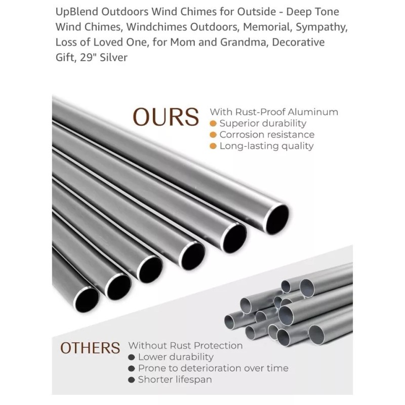 UpBlend Outdoors Wind Chime UpBlend Outdoors Silver 29-32” Full Length.