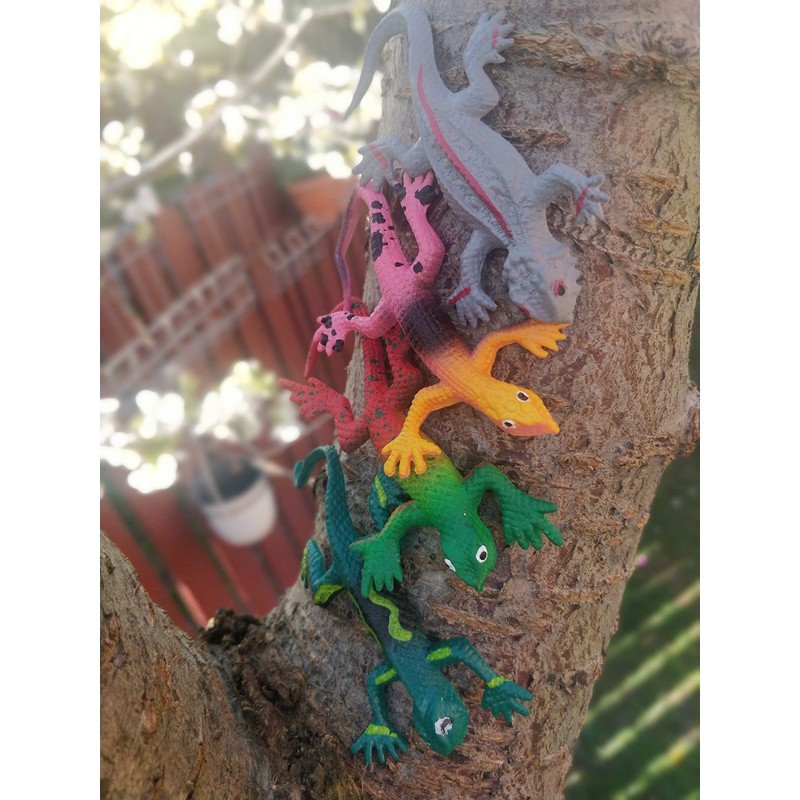 - Every lizard measures 3 inches. Lizards are highly detailed, realistic, colorful, and lifelike. This mini animal playset is painted with environmentally friendly paint and non-toxic material. Each lizard toy is individually wrapped, and all are packed in a highly resistant zipper bag. Each wrap contains a safety warning, so these stretchy rubber toys can be well used as piñata, Easter egg, goodie bags, or Halloween treat bags fillers.