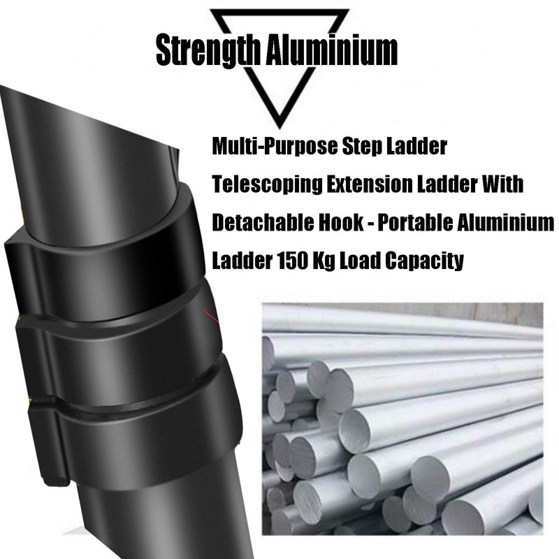 Updated 3.2M/10.5FT Telescopic Ladder with Detachable Hook Aluminum Heavy Duty Extendable Multi Purpose Ladder 330lbs Capacity EN131 Safety Approved