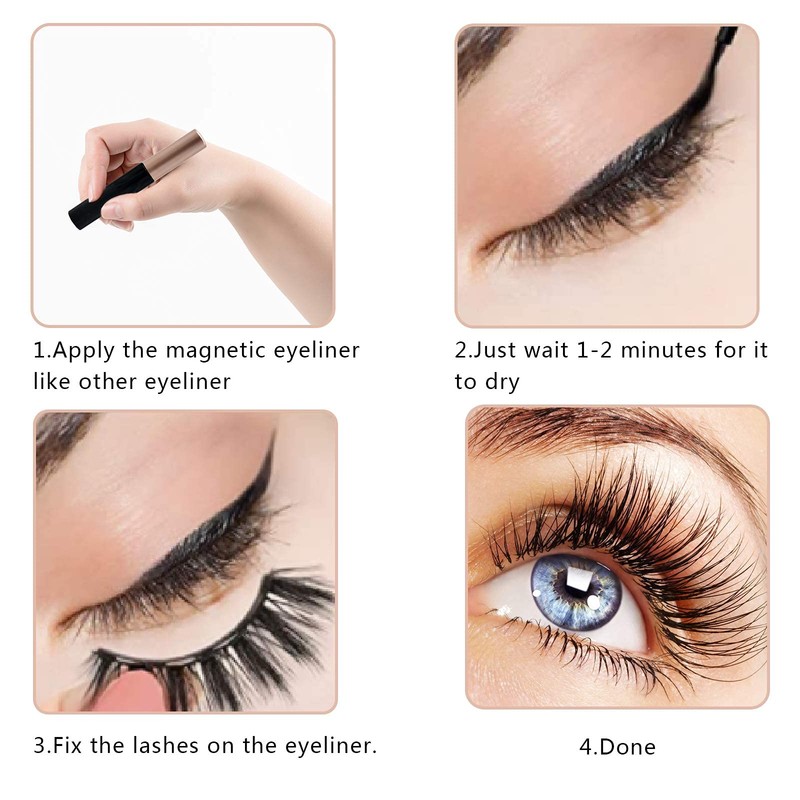 - 【Easy Apply】 Shake the magnetic eyeliner bottle before use, apply 2-3 layers of magnetic eyeliner along the upper lash line, then wait 1 minute for eyeliner to dry and attach magnetic eyelash. It's easy apply, even for the beginners.