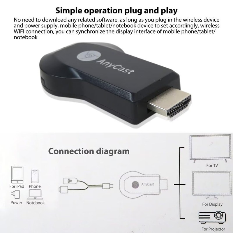 Package Include:1 x Wireless WiFi Display Dongle 1080P HDMI TV Stick DLNA Miracast AnyCast