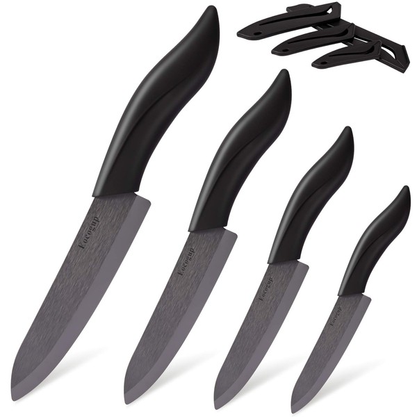 Updated Version Ceramic Knife Set 4-Piece with Sheaths (Includes 3" Paring Knife, 4" Fruit Knife, 5" Utility Knife, 6" Chef Knife) for Home Kitchen(Black)