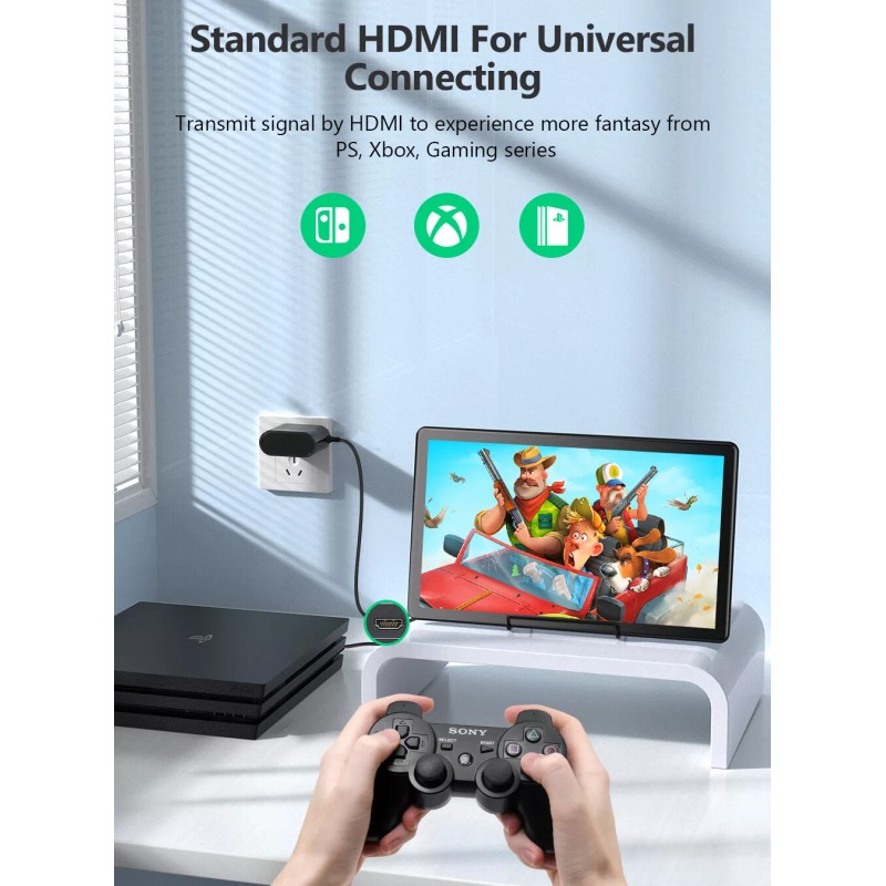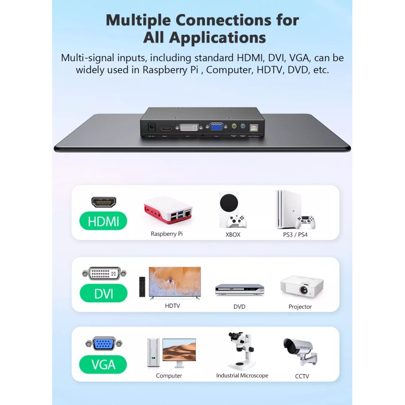 【Wide Applications】- 1.HDMI connection for gaming monitor(Xbox/PS4/PS5/Switch 2.HDMI connection for PC/Rasperry PI 3/4 3.VGA connection for CCTV / industril equiments 4.DVI connection for HDTV/DVD