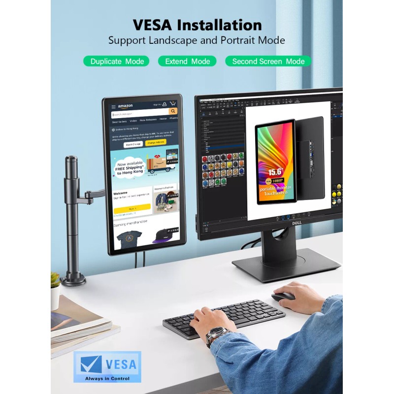 【Features Include】- Touch function, IPS178° full view,FHD1920*1080P,800:1 contrast,100% sRGB,HDR,low blue light,anti-glare & anti-flicker,full-screen & rounded edges,plug and play,VESA holes