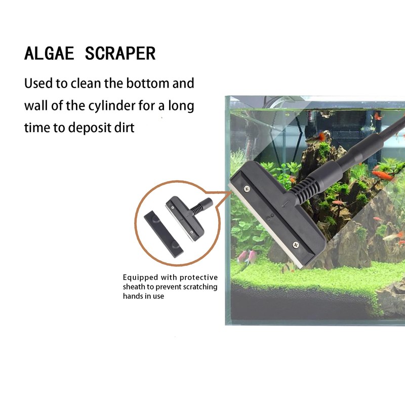 - Function: Remove any kind of tough or stain off your glass tank. The blade helps to scrape off all types of algae from glass aquariums easily. The pull-out units can be easily adjusted to the handle length for hard-to-reach areas by simply turning them. It can be used in saltwater fish tanks without rusting.
