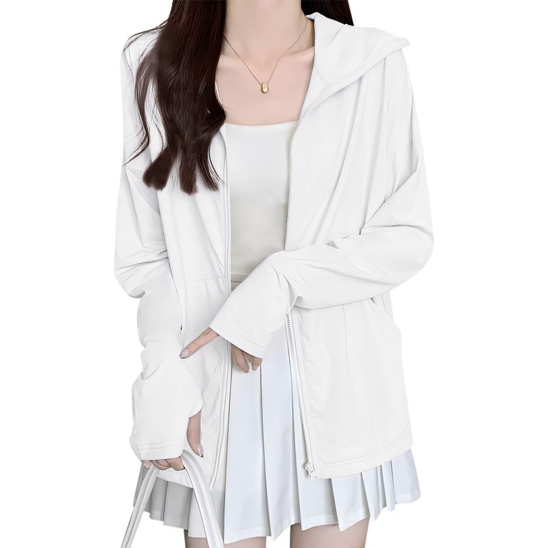 [inotenka] ラッシュガード レディース UPF50+ 接触冷感 UVカット 薄手 長袖 パーカー 軽量 水着 大きいサイズ 日焼け対策 フード付き 吸汗速乾 通気性 紫外線対策 夏 海 無地 可愛い おしゃれ(L ホワイト)