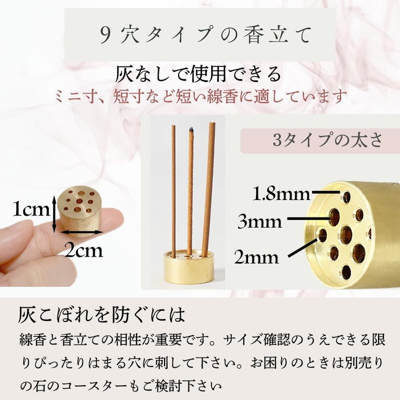 The diameter of the incense holder is approx. 0.07 inch (1.8 mm), 0.1 inch (2.0 mm), 0.1 inch (3.0 mm).