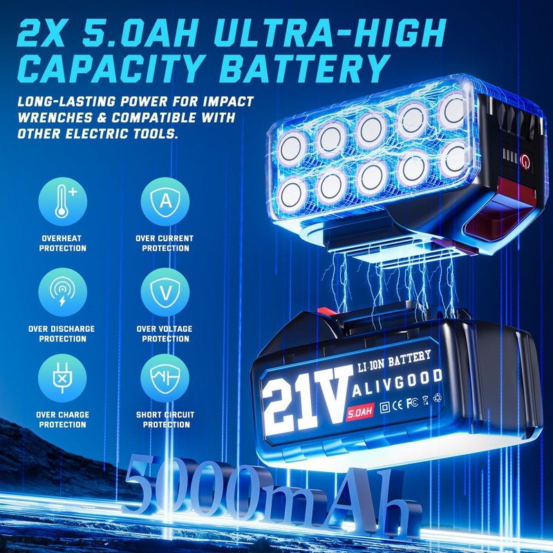 - 【Powerful Torque Performance】: The ALIVGOOD 1300N.m/1000Ft-lb electric impact wrench easily handles heavy-duty tasks such as automotive repairs, Duty Truck, RV Mower, and other high-torque applications.