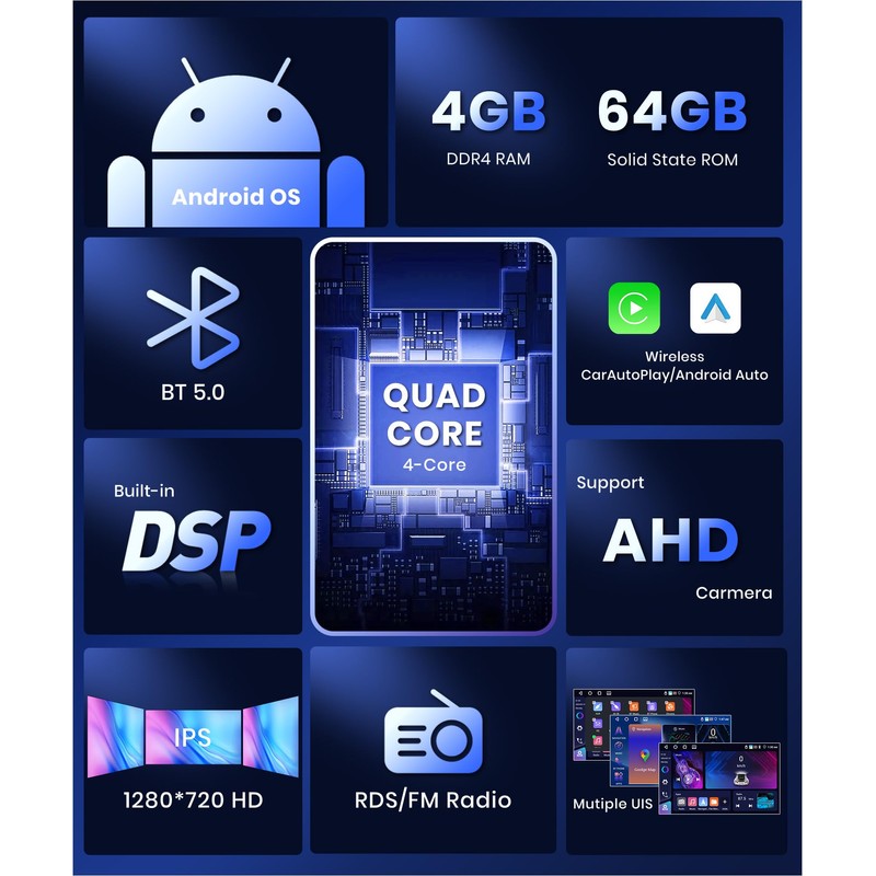 - 2.【High Performance Revolution, New Upgrades】 Our Bluetooth radio for car with 8 core processor and latest Android system to provide you with smarter and high efficient services. 4G RAM ensures that the machine runs smoothly.64G ROM allows you to download more apps.Latest Android car radio makes you enjoy the most advanced operating system for your car device, with fast performance, smooth interface, and access to variety of apps