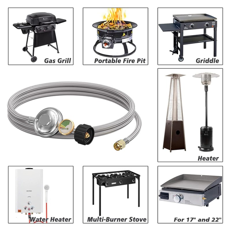 • 【Wide Compatibility】Compatible for Blackstone 17" and 22" Table Top Griddle and Camper Grill. Replacement for Weber models Genesis Silver C, Gold, 300-series gas grills, Genesis Platinum B and C, Spirit E-310/E-210 etc. Compatible for Char-broil, Brinkmann gas grill, Uniflame and other outdoor propane grills with 3/8" male flare fittings. Suitable for most Gas Grill, Fire Pit, Heater, LP Generator, Side Burner, Camping Stove and fit for most low pressure gas propane application.