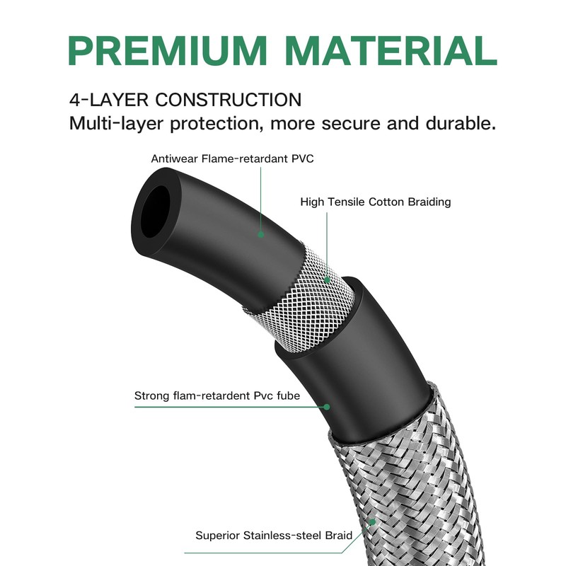 • 【Package List & 100% Satisfaction Guarantee Promise】Package includes: 1 PC Upgraded 6 Feet Stainless Braided QCC1 Type Low Pressure Propane Regulator Hose with Gauge + 1 PC 90 Degree Solid Brass Propane Elbow Adapter + 1 PC Roll Sealing Tape + 1 PC Wrench + 1 PC Buckle Velcro. If for any reason you are not satisfied with our products after received within 2 years, simply contact us for Free Replacement or Refund. Our Customer Service will solve your problems within 24 Hours.