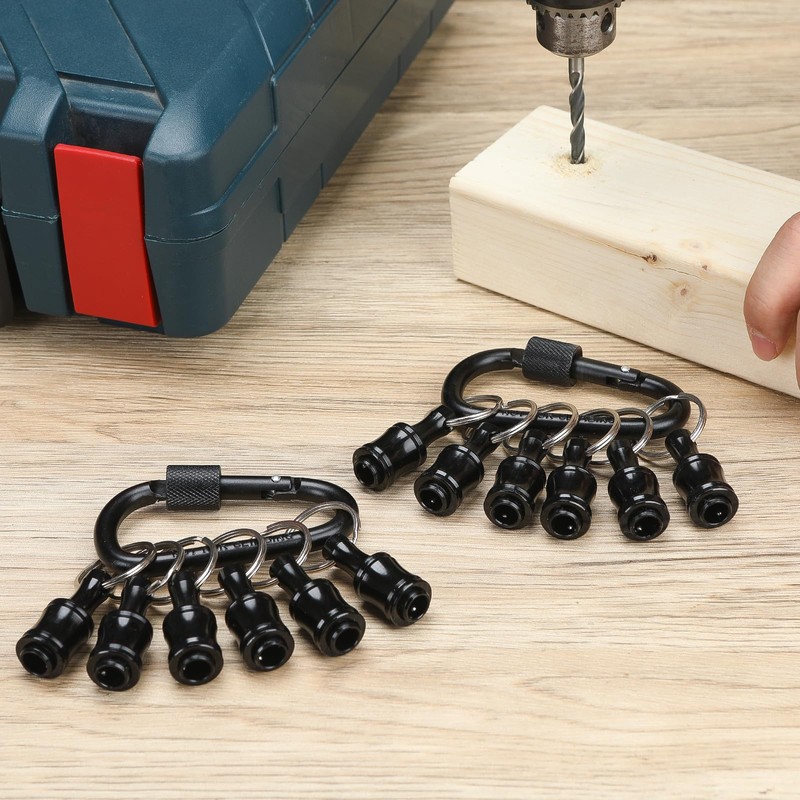 - 【Package includes】6 pieces of 1/4 hex shank Keychain extension, 1 Black Carabiner