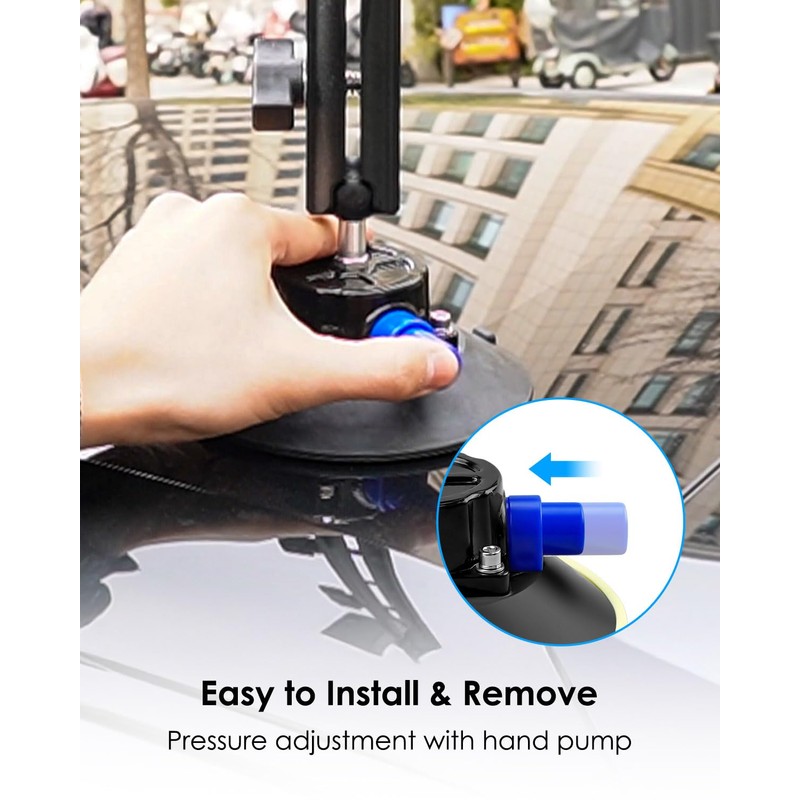 - Easy to Install and Remove: Just assemble the bracket and place it firmly on a smooth surface, then use the hand pump to fix it. When you need to move the equipment, you can easily release the pressure for quick remove, will not cause any damage to the vehicle surface
