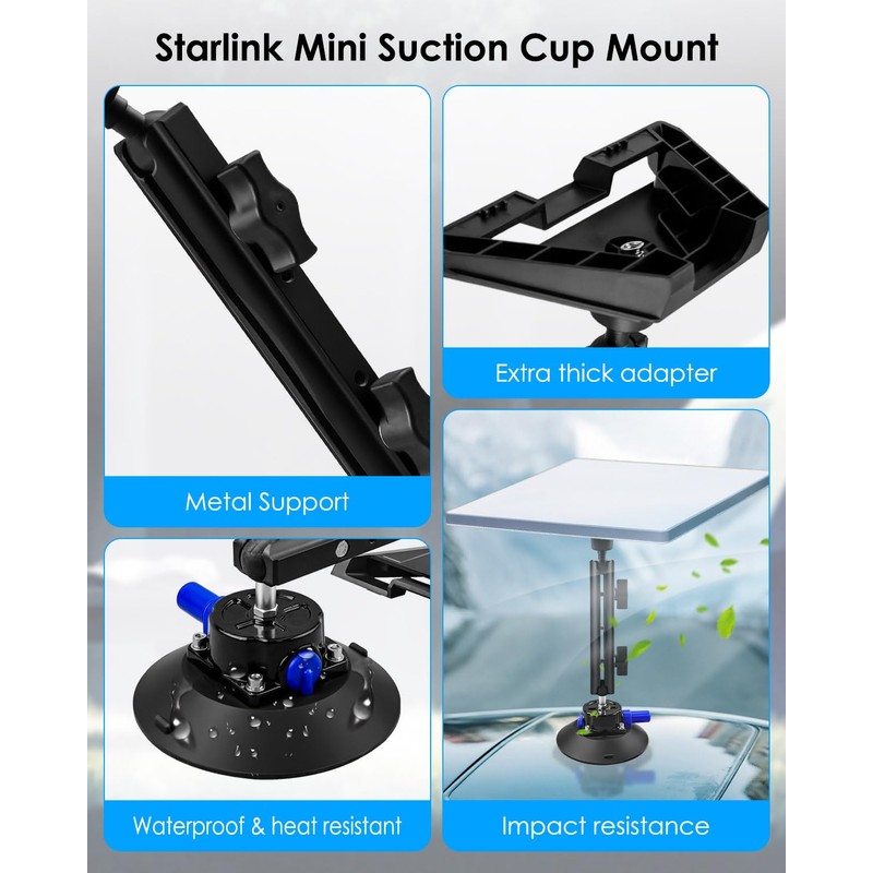 - 360° All-Round Adjustment: Starlink mini suction cup mount has an adjustable design and supports 360° full-angle rotation and locking, allowing you to adjust the angle of starlink mini as needed to ensure that the network connection is always in the best condition