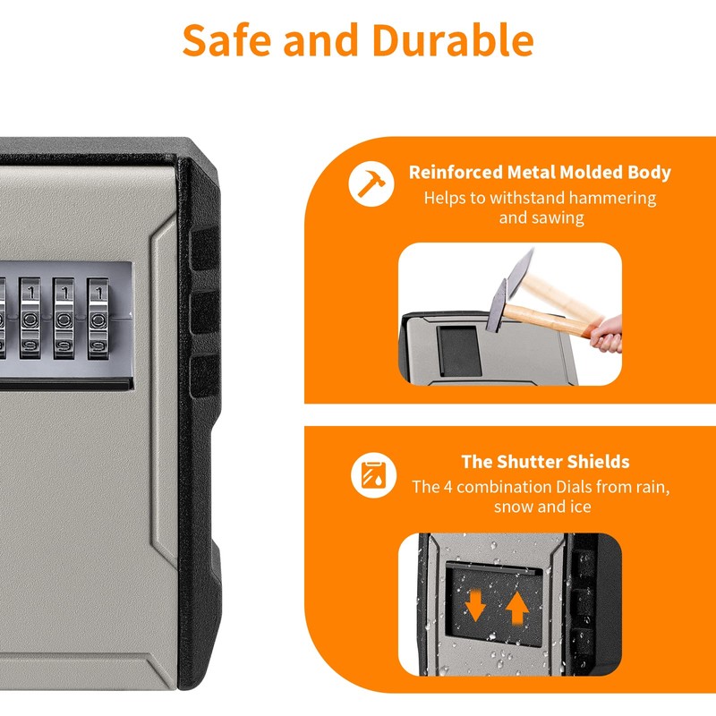 The 4-digit combination provides 10,000 unique choices, which makes the key storage box have high security for protecting your keys.