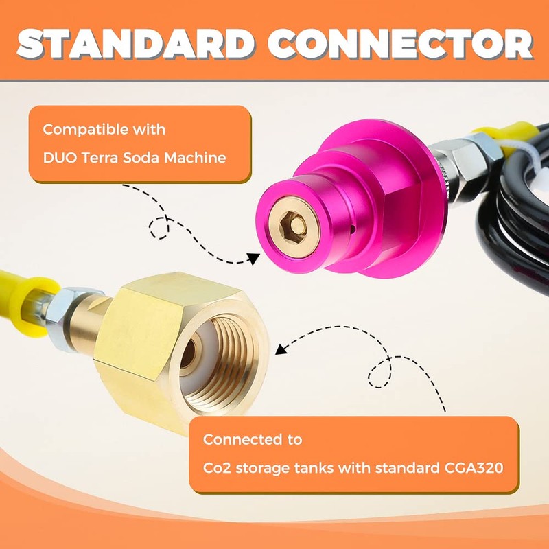 - 【ADAPTIVE MODELS】:This Co2 adaptor is compatible with DUO Terra Soda Machine. Quick CO2 adapter hose is connected to Co2 storage tanks with standard CGA320.