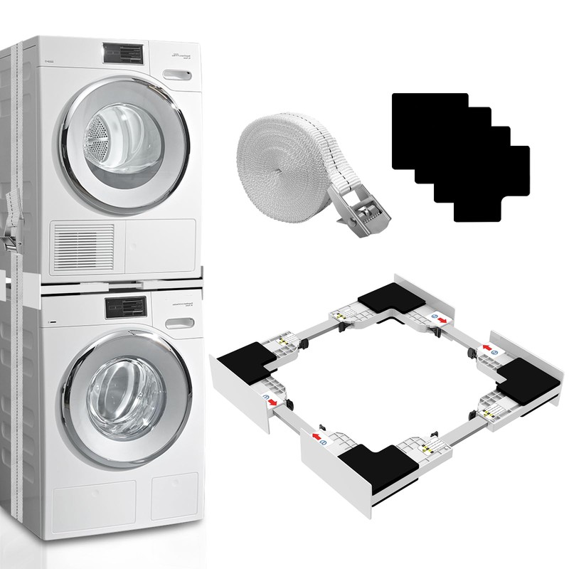 - Easy Installation: No hardware or tools required, follow the instructions, or watch the installation video, it only takes 5 minutes to place the stacking kit between the dryer and washer, adjust it, and finally secure it with the ratchet straps to finish it off