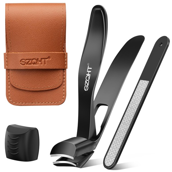 Toenail Clippers for Seniors Thick Toenails, Upgrade Angled Head Large Toe Nail Clippers for Men with Wide Jaw Opening, Sharp Heavy Duty Fingernail Clipper Cutter with Catcher Long Handle -Black