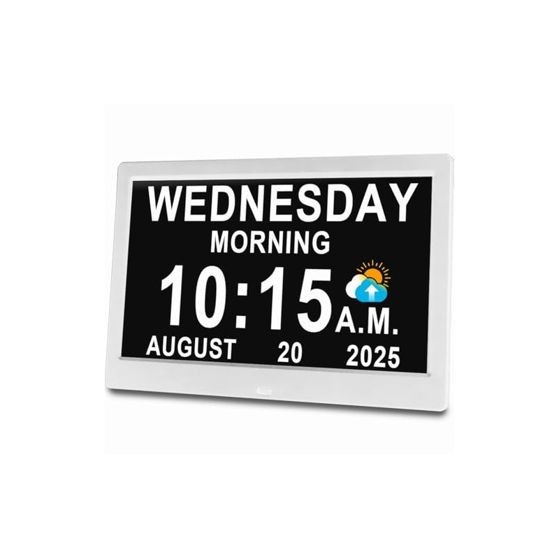 ใUpgradedใ11.5" Large Digtal Clock with Voice-Talking Day and Date for Seniors, Auto DST, 19 Alarms & Auto Dimmable, Non-Abbreviated Talking Clock for Elderly Dementia Alzheimers- White with Remote
