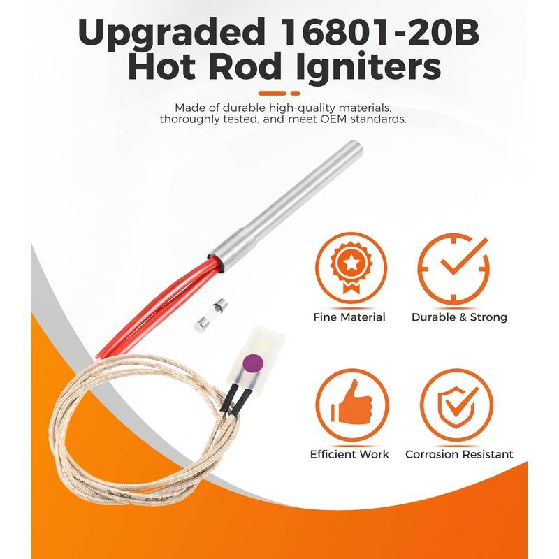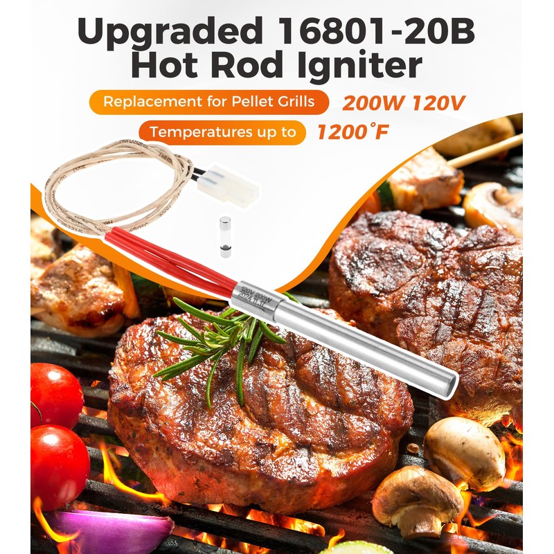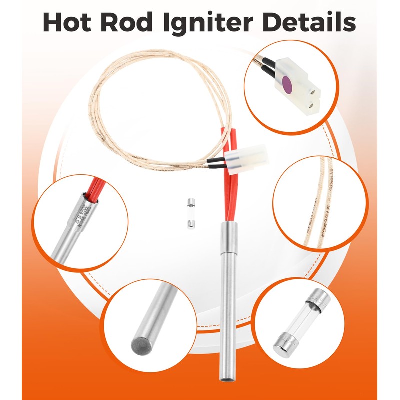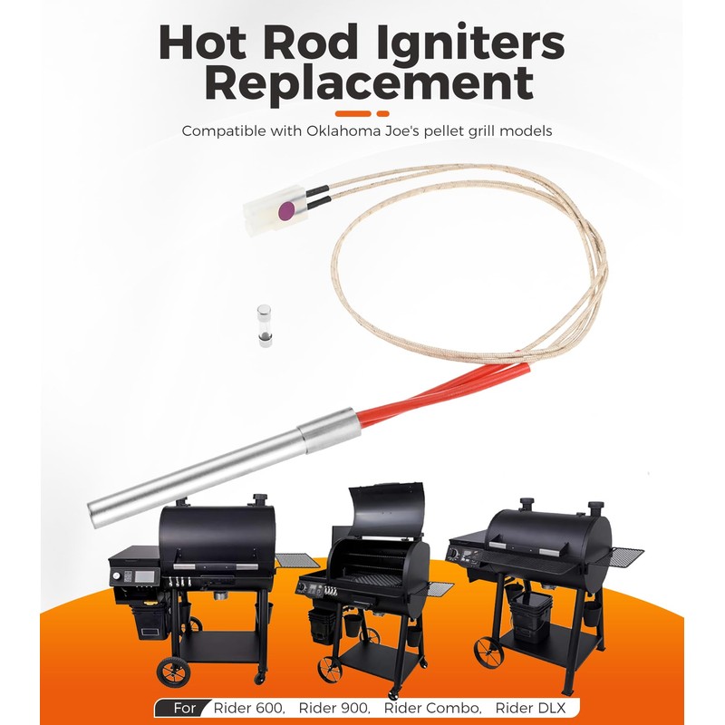 Upgraded 16801-20B Hot Rod Igniter Kit ?200W 120V, 1,200癋 High-Temp Ignition Compatible with Oklahoma Joe抯 Rider 600/900/Combo/DLX Grill, Durable Heating Element with Fuse ?Direct Replacement Part