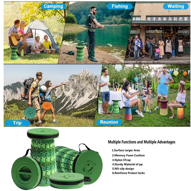 - Widely Application: Camping stool can be used indoors and outdoors, in indoor places such as living rooms, bedrooms, bathrooms, kitchens, and offices. Outdoor activities: garden, hiking, BBQ, camping, queuing, fishing, etc. Perfect gift for friends.