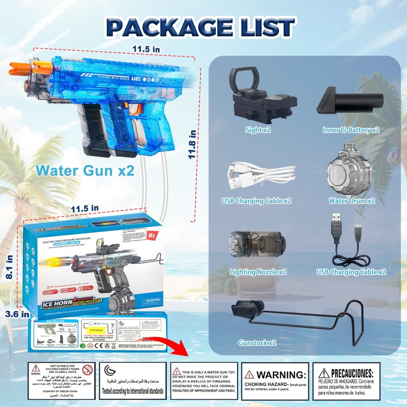 - Perfect Summer Gift: Electric water gun is a summer gift for children and a must-have prop for adults' beach parties. Water guns for adults are the perfect summer toy for swimming pools, beaches, water parties, and outdoor play. During the summer months, there's no better way to cool down than a water battle! With these automatic water guns, let the children indulge in the cool world of water