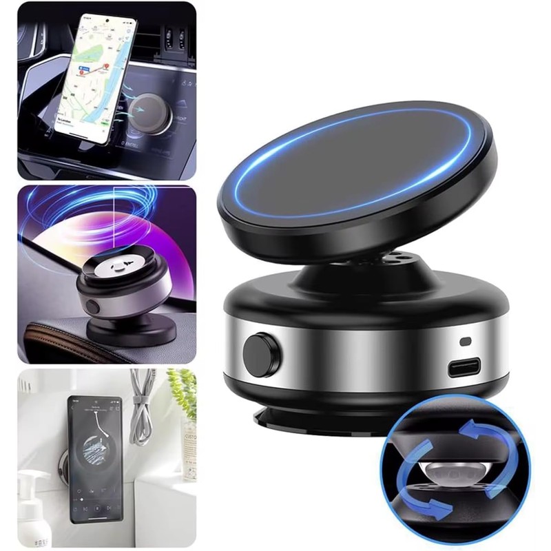 Upgraded 360° Adjustable Magnetic Phone Mount with Electric Vacuum Suction, Hands-Free Magnetic Holder for Car, Gym, Mirror, & Smooth Surfaces, Compatible with MagSafe iPhones, anf other phones.