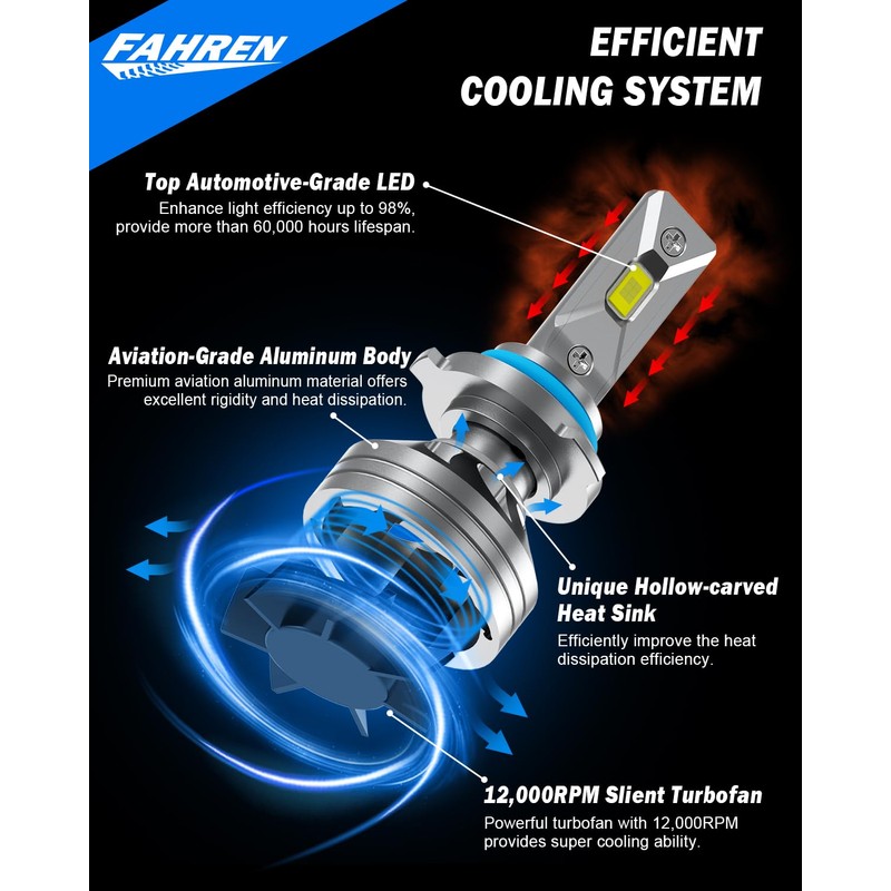 - 【Over 6,0000 Hours Lifespan】The 9012 light adopts a hard aviation aluminum housing and a unique hollow heat dissipation design, It has a built-in 12,000 RPM cooling fan to work lifespan up to 60,000 hours.