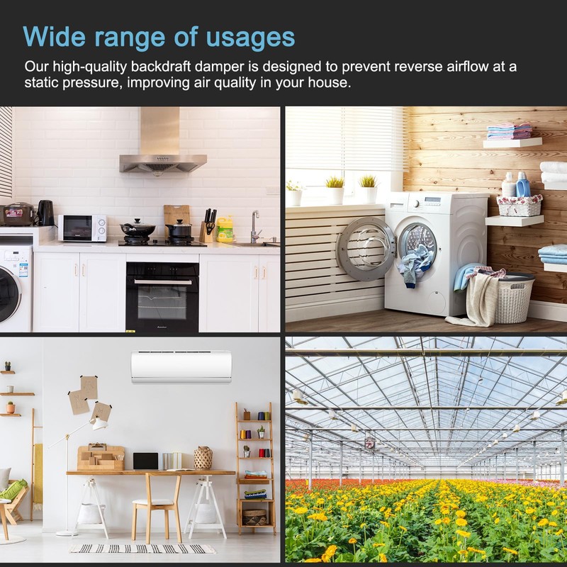 • 【Wide Applications】The 6 inch duct draft blocker valves can be inserted into ventilation dryer vent hose. Designed for use with range hoods, bathroom fans, kitchen and other home HVAC applications