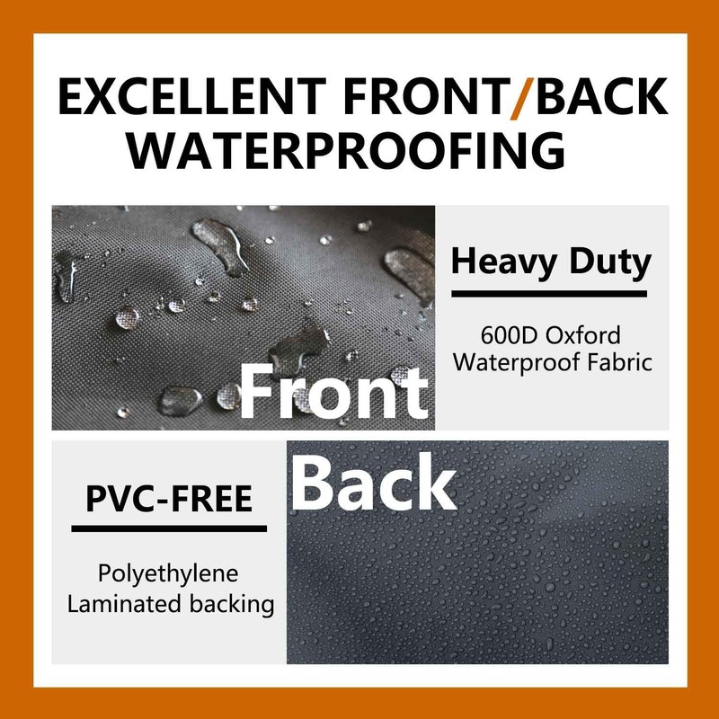 - High Durability and Well-designed --- Crafted from heavy-duty 600D Oxford fabric, this cover offers excellent weather-resistance, water-resistance, fade-resistance, and rip-resistance. With an added UV-stabilized coating and a PVC-FREE water-resistant laminated backing, it's built to endure all seasons. An extra round of material is included for patching, ensuring long - term use.