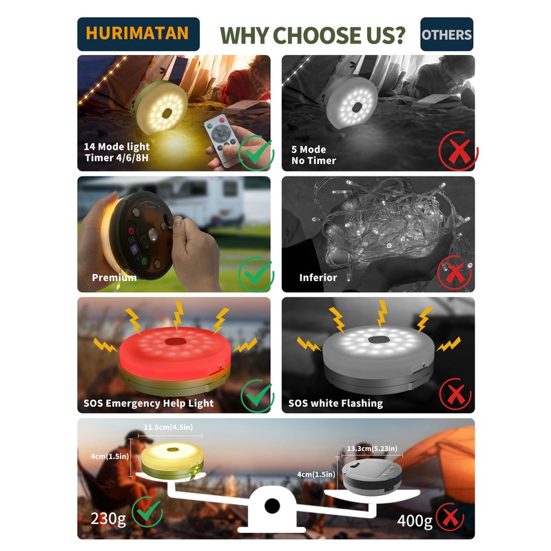 - 2 IN 1 CAMPING FAIRY STRING LIGHT AND CAMPING LANTERN: Hurimatan. With its 33FT string of warm white lights, whether you're snuggling under the stars or enjoying a campfire, the Hurimatan Camping Lantern creates a cozy and inviting ambience, perfect for couples and campers alike