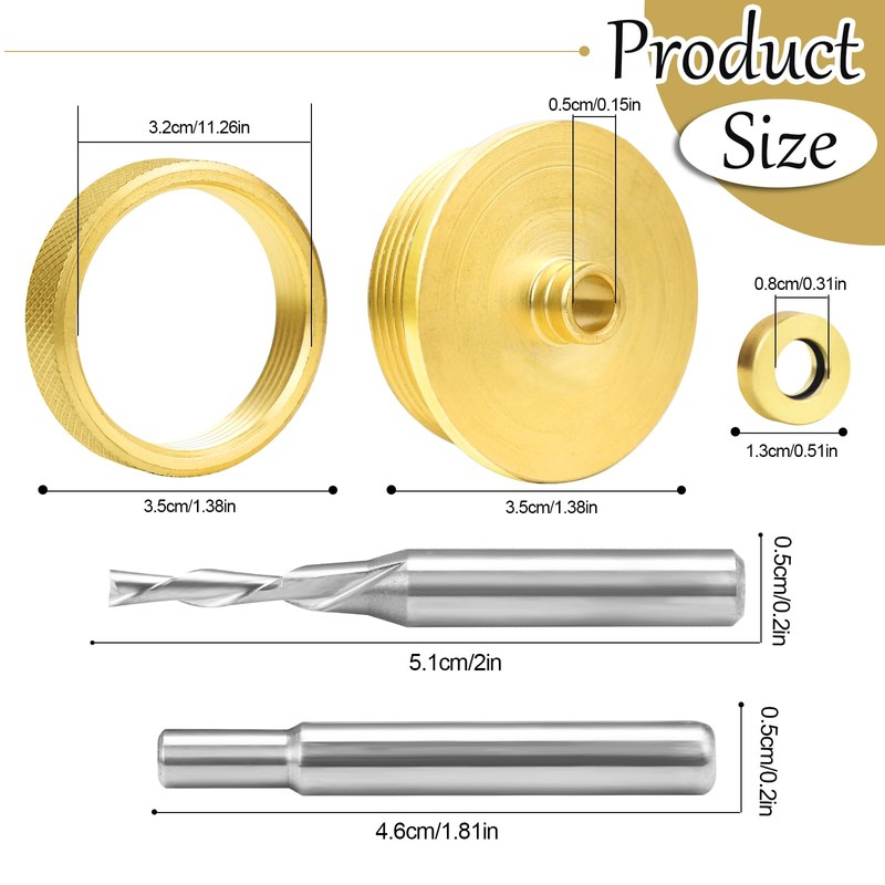 • Versatile Design: The router inlay kit includes 1x 9/16 inch diameter bushing,1x collar 5/16 of an inch outer diameter,1x universal centering pin,1x 1/8 of an inch solid carbide,1x router bit of a quarter inch, allowing for cutting solid brass inlays of different sizes and shapes to meet various needs