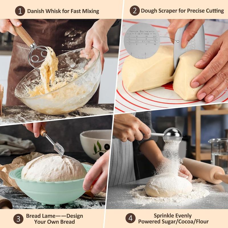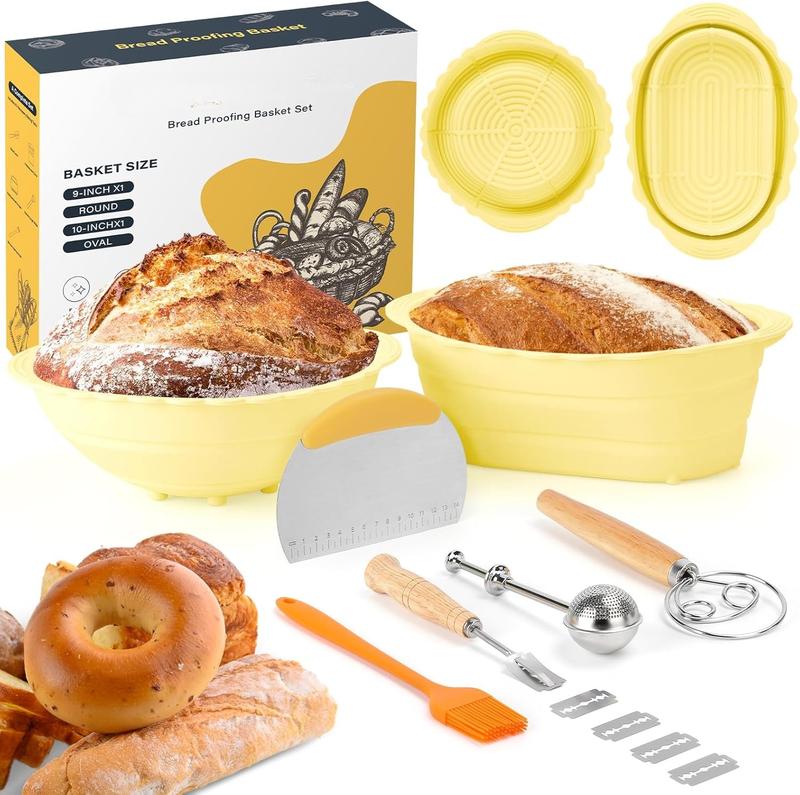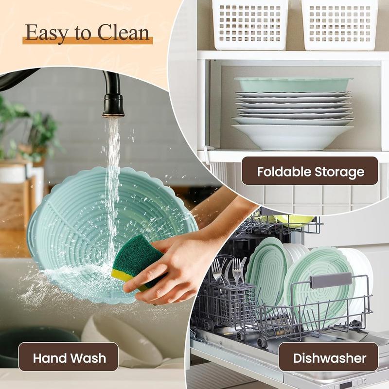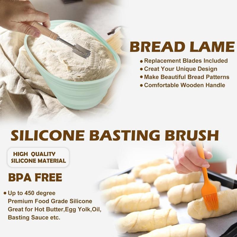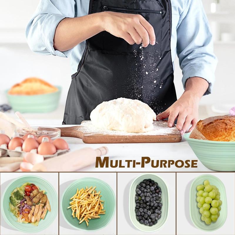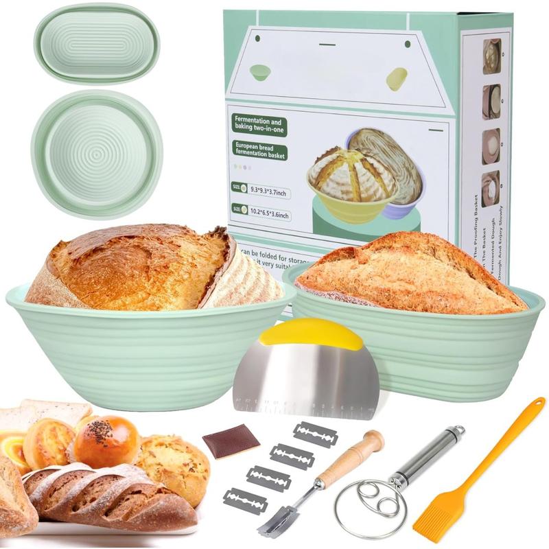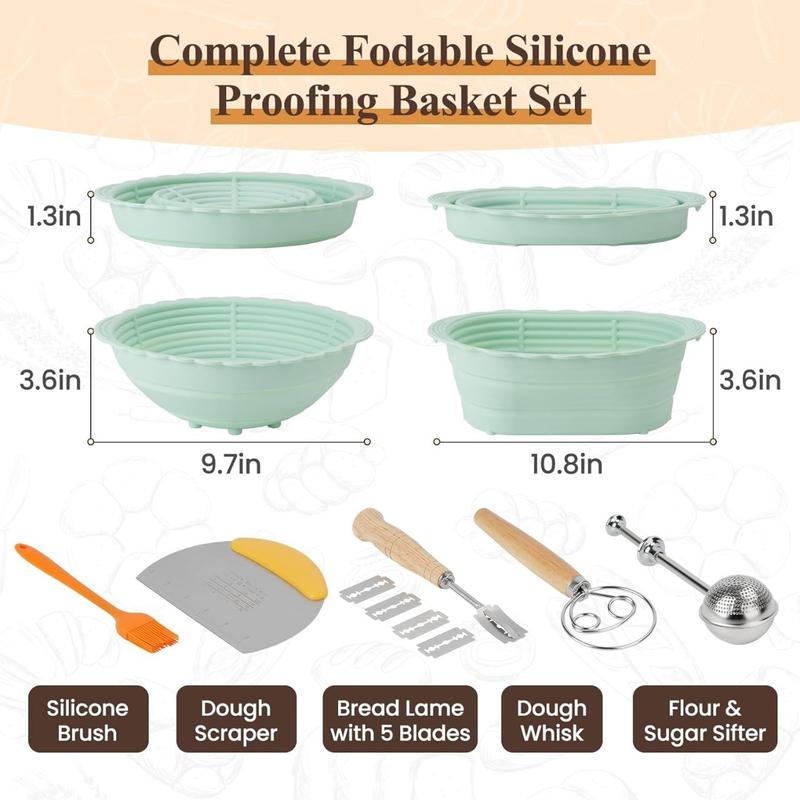 Upgraded Silicone Banneton Bread Proofing Basket,9 Inch Round & 10 Inch Oval Foldable Sourdough Baking Baskets, Sourdough Starter Kit - Color: Upgrade Green 9'' Round+10''Oval