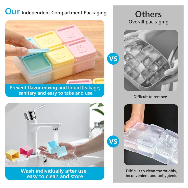 - 【Easy to Use & Clean】 Silicone individual molds with lids are made easy for each use. You can insert them individually in the freezer or put them all in the tray. Clean effortlessly after using every time