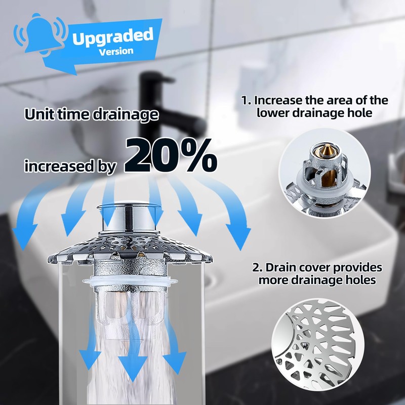 Upgraded Sink Drain Strainer for Bathroom, Faster Drainage, No Residual Water...