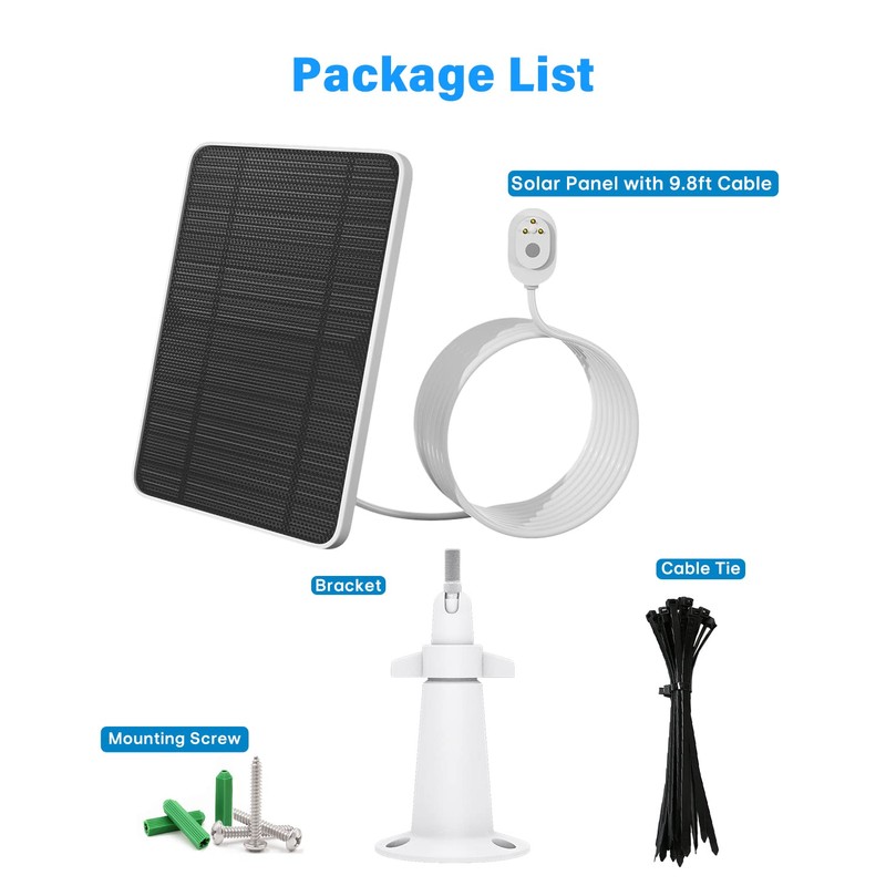 - 【360°Adjustable Bracket & 9.8ft Extra-Long Cabel 】Our solar chargers are equipped with 360° rotation adjustable secure wall mount bracket & extra-long 9.8ft/3m charging cable, which allows you to easily position your solar panel to capture the maximum sunlight exposure in different seasons. WARM TIP: make sure the magnetic connector pins are fully clicked in place when connect to the Arlo camera.