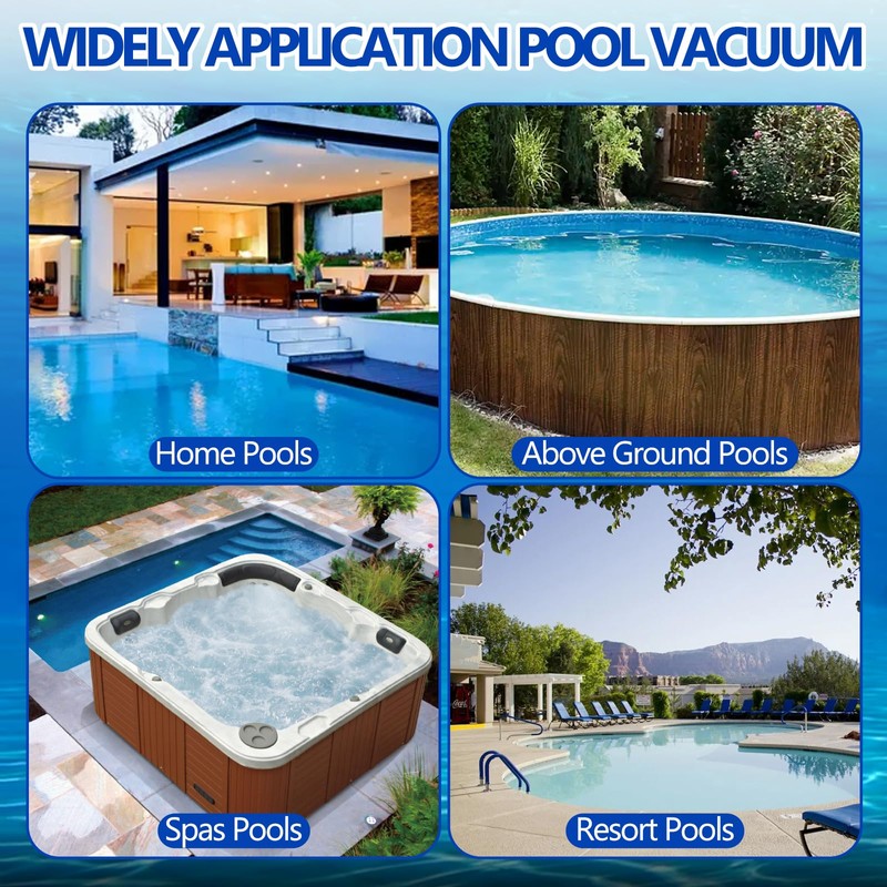 - - Versatile and Lightweight: This portable pool vacuum cleaner's lightweight design allows for easy maneuverability. Its angled brush head thoroughly cleans upholstery including inground and inflatable pools, hot tubs, fountains, and ponds, offering versatility in various water cleaning tasks.