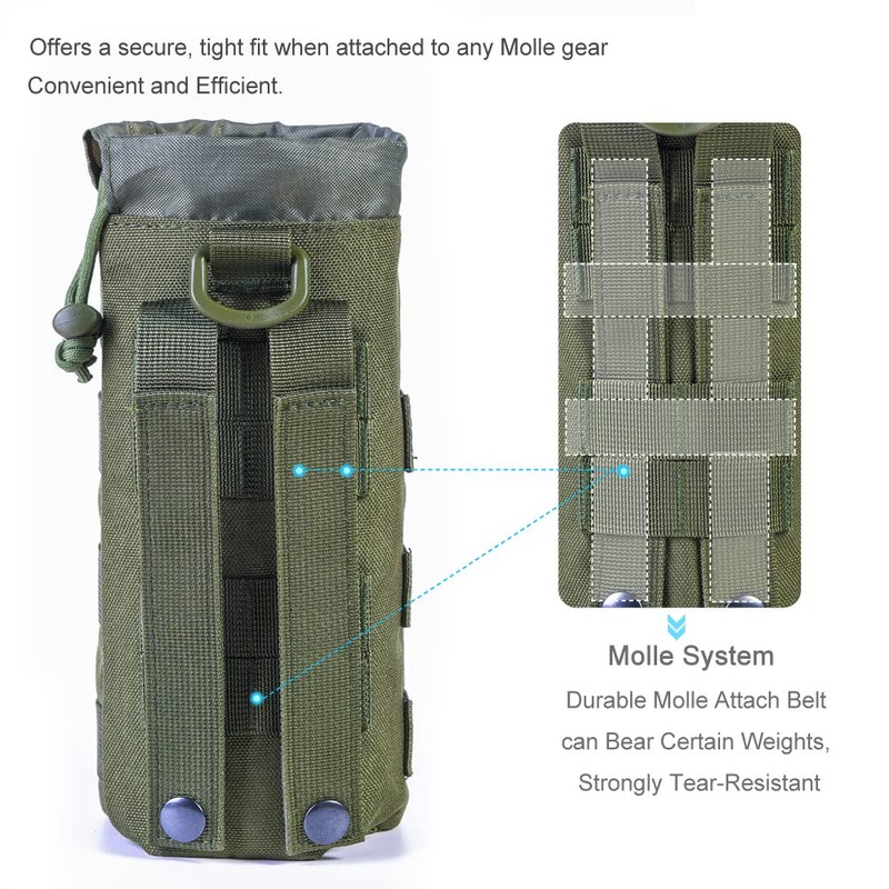 - Tactical Water Bottle Pouch is Easy to Connect to other Moller Equipment and is Easy to Reinforce to Prevent the Bottle from Pulling Down or Turning Around Because of Gravity when Walking or Jogging.