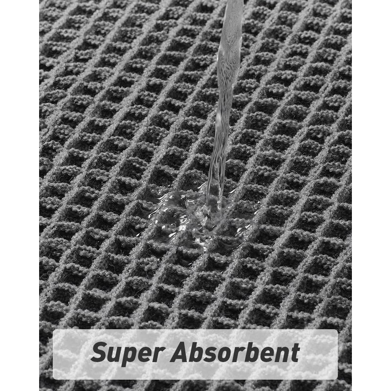 - Great Water Absorption: Double layer of deep waffle texture absorbs water instantly and more breathable. In addition, the yarns we use is inherently absorbent-it absorb water like crazy. This absorbent bath mat can soak up the water and keep your floor dry like a giant sponge, and protect your feet from the cold floor.