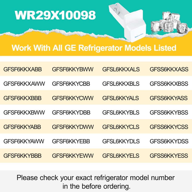- 【WR29X10098 ice maker tray for GE Refrigerator】WR29X10098 Ice Bin Replacement fit ge Refrigerator model included: GFSS6KKYDSS GFSS6KKYESS GFSF6KKXBBB GFSL6KKXBLS GFSL6KKYELS GFSF6KKYBBB GFSF6KKYBWW GFSF6KKYCBB GFSF6KKYCWW GFSF6KKYDBB GFSF6KKYEBB GFSS6KKYCSS GFSF6KKXAWW GFSF6KKYABB GFSL6KKXALS GFSL6KKYALS GFSL6KKYBLS GFSL6KKYCLS GFSS6KKXASS GFSS6KKXBSS GFSS6KKYBSS , etc. IMPORTANT WARNING: Check your exact refrigerator mode.