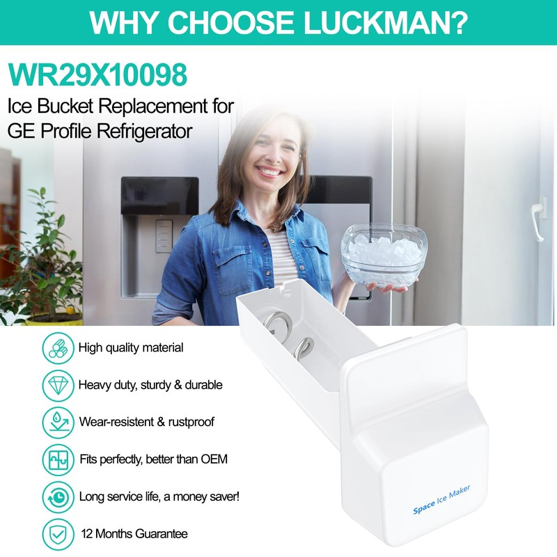 - 【High Quality Material】WR29X10098/WR29X10096 Ice Container Bucket for GE Refrigerator replacement ice maker made of environmentally friendly premium thickened food grade materials,durable and strengthen. Our GE ice maker meet OEM standard, it have good Auger, better constructed let your ice bucket works better.